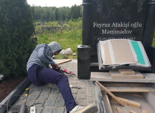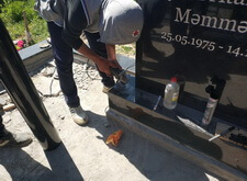 Так выглядит место захоронения после укладки установки памятника и укладки брусчатки