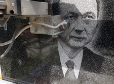 Для того, чтобы достичь максимальной точности изображения, мы использовали гравировальный станок. Установив его перед памятником, мы запустили аппарат. На фотографиях ниже представлен процесс гравировки станком.